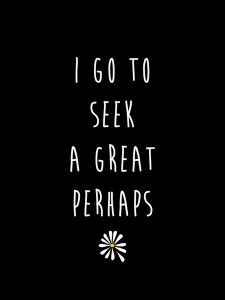 I go to seek the great “perhaps”. Perhaps the next part of our lives can be the best part. Perhaps this time we can deal with it and let it go. Perhaps there will be more time for good friends and food, more moments lying on the grass in the sun and swinging little children. And laughter.