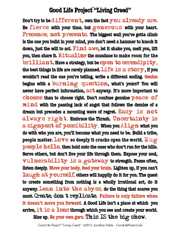 This is ridiculous. From what I have seen in life, I don’t think we need to go looking for some new “mystery” dream. The most important ones we’ve already had. Sure, at a very young age the idea of being a sea captain or ballet dancer occurred to us. But at an older, wiser age, we thought, “I should own a bookstore!” or “I love jam so much I should make it” or “Wouldn’t it be fun to be a tour guide in Italy?” We just failed to tie our lives to it. We let it float off, where it eventually ran out of air, sank and got buried by 1,000 other more practical or less scary or far less specific dreams.